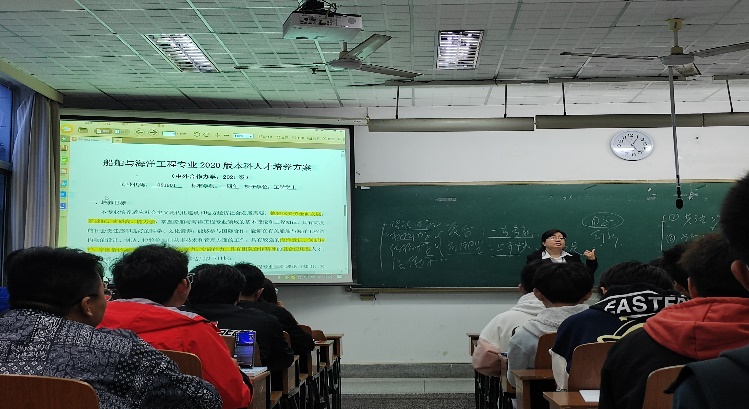 张会霞从船舶专业前景入手,对本院新生寄予厚望,同时结合当今海洋强国的建设政策,让员工们对“船舶与海洋工程专业的春天”有了更加深刻的理解和认识;而后具体分析了海洋意识、国际视野、家国情怀等教学培养目标的内涵。