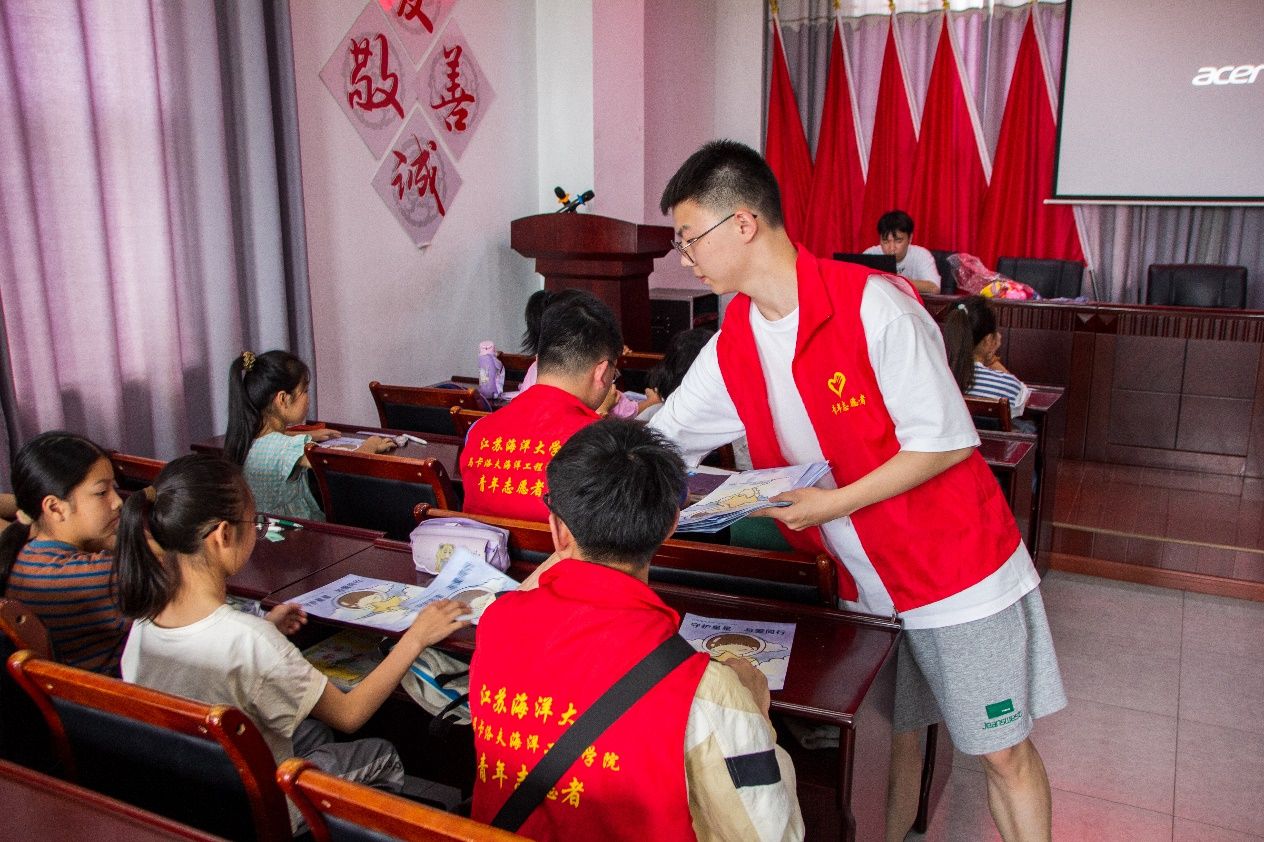 7月5日,Bevictor伟德官网红十字会在镇江市丹徒区世业洲看望当地留守儿童,为他们普及海洋知识。