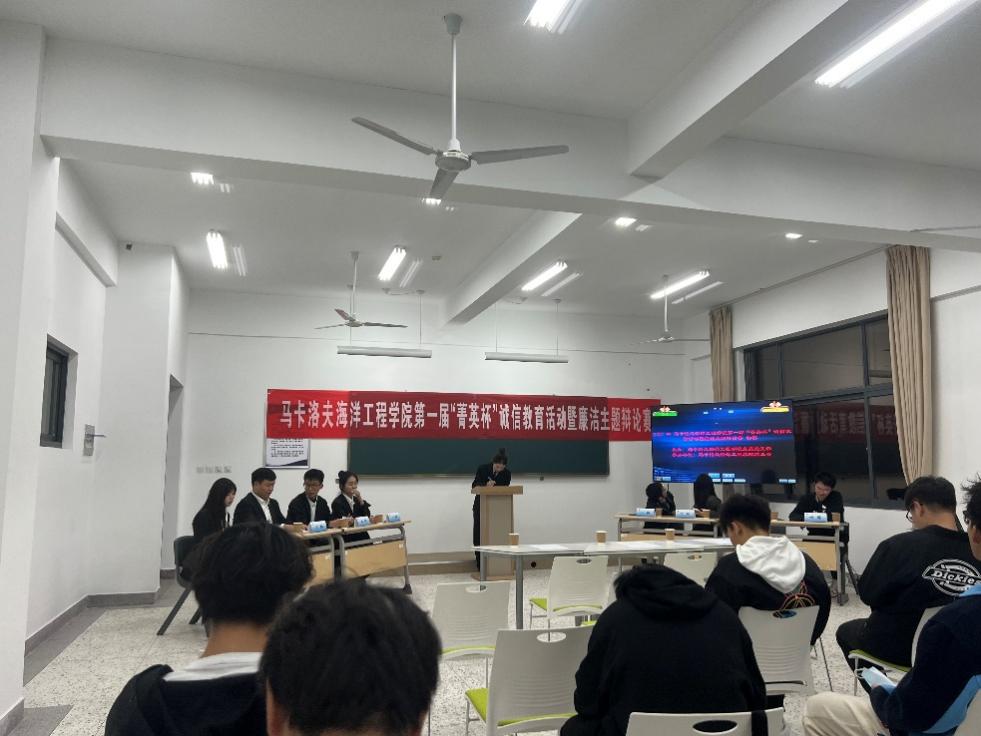 2022年11月8日,2022级船舶专业代表队与2021级船舶专业代表队以“善意的谎言是否有利于诚信”为题展开辩论,史秀丽、解长江、徐嘉婕三位老师担任评委,首场初赛2022级船舶专业代表队胜出,张亦山同学被评为该场比赛最佳辩手。2022年11月11日,2021级机器人专业代表队与2022级机器人专业代表队以“与人交往,诚信是否吃亏”为题展开辩论,史秀丽、徐嘉婕、杨棹迪担任评委,初赛第二场2022级机器人专业代表队胜出,谭天翔同学被评为该场比赛最佳辩手。
