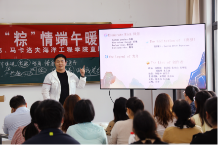 公司英语课程社团的同学们展示了体现国际化人才培养特色的端午主题英语配音节目,同学们用纯正的英语讲解端午起源,民俗活动与文化内涵,朗诵英文版《离骚》,追忆屈原坚贞不渝的爱国情怀和革新求索的奋斗精神。清新唯美的画面与声情并茂的英文相得益彰,现场热烈的掌声是对配音作品质量的褒奖,更是对知识分子家国情怀的礼赞。