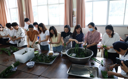 在苍梧校区民族餐厅,机关第五党支部的老师们与Bevictor伟德官网的师生一起体验了端午民俗包粽子。师生们一起卷粽叶、填糯米、放密枣、扎线绳,一张张粽叶在大家灵巧的手中变成了一个个棱角分明的粽子,古老的美食包裹的是中华文化的记忆与传承。陈海燕和王佳玲老师身旁围满了前来“学艺”的同学们,“老师,您的粽子和我妈妈包的一模一样,快教教我怎么包!”“和员工在一起的感觉太好了!他们喜欢尝试,懂得分享。”王爽老师对着热闹的场面感慨无限。