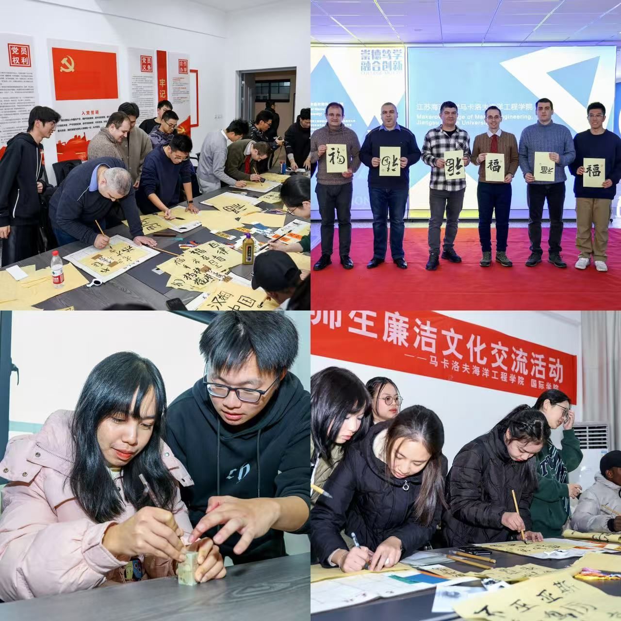 公司的书画爱好者们以自律诗词为载体,将思想和审美融入笔端,在书签、卷轴、宣纸上挥洒自如地描绘中华文明之美。乌克兰国立造船大学的老师以及越南、老挝等国的职工们也现场体验了中国书法和篆刻的魅力和独特韵味。公司“国学社”成员还向中外老师们赠送了精心创造的书法作品,以此表达对他们辛勤耕耘教育事业的感激之情,也为书香校园增添了一抹亮丽的色彩。