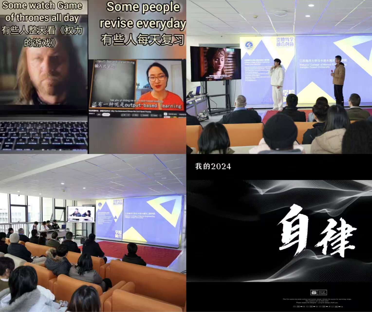 两院学子分别用中、英文向在场的中外师生讲述了 “许衡不食梨”、“徐浦储豆”、“司马光警枕”等自律故事以及各自国家对于“自律”的理解。乌克兰马卡洛夫国立造船大学老师们通过坚持与成就等案例来阐述他们对自律的理解和推崇,展现了不同文化背景下对自律的共同追求。