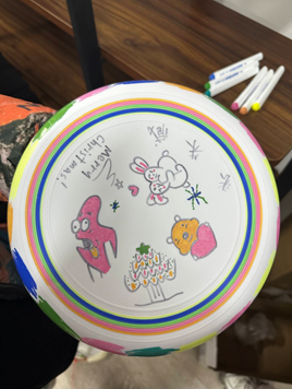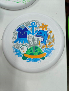 活动以小组的形式展开,三人一组,参赛选手们利用飞盘作为画板,在飞盘上进行绘画创作。同学们运用丰富的色彩,发挥独特的想象力,将飞盘变成了一幅幅具有艺术感的作品。色彩能够影响人类的心理,不同的颜色具有不同的心理倾向。蓝色代表灵性知性,绿色代表自由和平与安全,黄色代表警告,橙色代表亲切,红色代表热情自信等等。色彩的搭配能够从侧面显示出个人的情绪,进而影响个体行为。本次飞盘绘画创作也让大家在创作过程中更好地感受到自身的情绪状态。