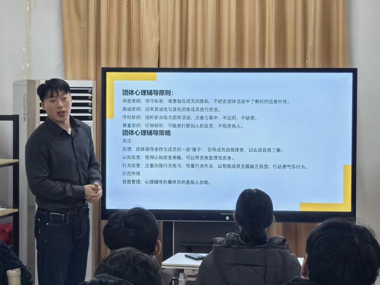 祁明慧举出了OH卡牌的应用案例向心理委员讲解了团体心理辅导,并采用互动的方式调动心理委员们的积极性与注意力,让心理委员明白了团体心理辅导对于心理健康的帮助。