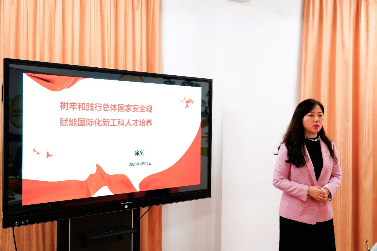 4月15日,公司直属党支部书记、常务副经理、关工委主任徐岚在员工一站式社区A9/A10-205为公司师生上专题党课—“树牢和践行总体国家安全观 赋能国际化新工科人才培养”。徐岚从“正确理解和把握总体国家安全观”、“中外合作办学立德树人面临的安全挑战”、“总体国家安全观指导下的中外合作办学育人体系构建”三个方面阐释了习近平总书记创造性提出的总体国家安全观系统思想是维护国家安全的行动纲领和科学指南;中外合作办学机构准确把握和践行总体国家安全观,既是坚持社会主义办学方向的现实需要,也是落实立德树人根本任务的客观遵循;坚持总体国家安全观是提升公司国际化新工科人才培养质量的重要保证。
